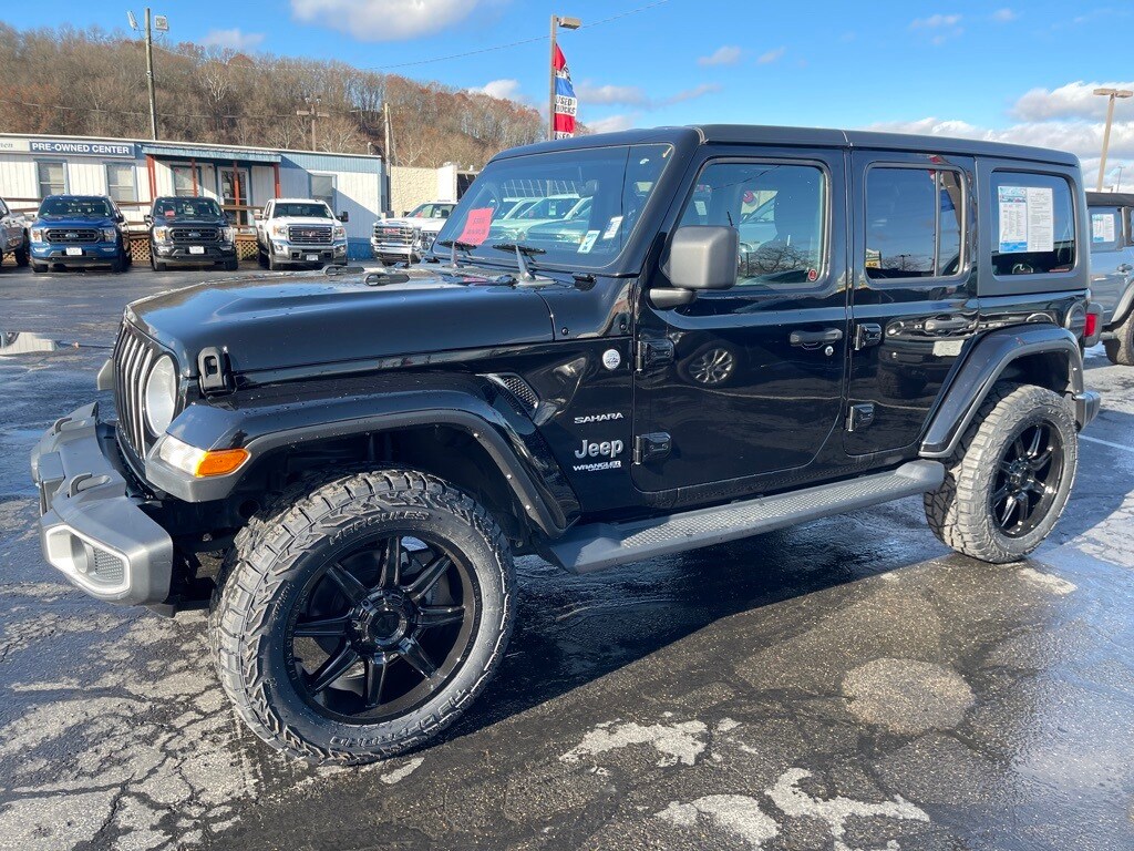 PLEASE, BRING YOUR TRADE AND TEST DRIVE THIS USED BLACK CLEARCOAT 2021 JEEP WRANGLER UNLIMITED SAHARA 4X4 SUV THAT IS EQUIPPED FOR YOUR COMFORT AND CONVENIENCE AND HAS ADVANCED CONNECTIVITY OPTIONS PLUS A BLACK 3 PIECE HARD TOP. STOP BY TODAY AND DISCOVER MORE. FREE CARFAX REPORT.